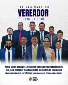 1 de Outubro – Dia do Vereador! Hoje celebramos o trabalho daqueles que dedicam sua vida pública a representar a população, propor leis, fiscalizar o poder público e buscar soluções para melhorar a vida de todos.