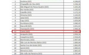 O estudo aponta que cidades como Goiânia, Chapadão do Céu e São Miguel do Passa Quatro ocupam as primeiras posições do ranking, enquanto Ceres se destaca na região centro-norte do estado, superando municípios de porte semelhante.