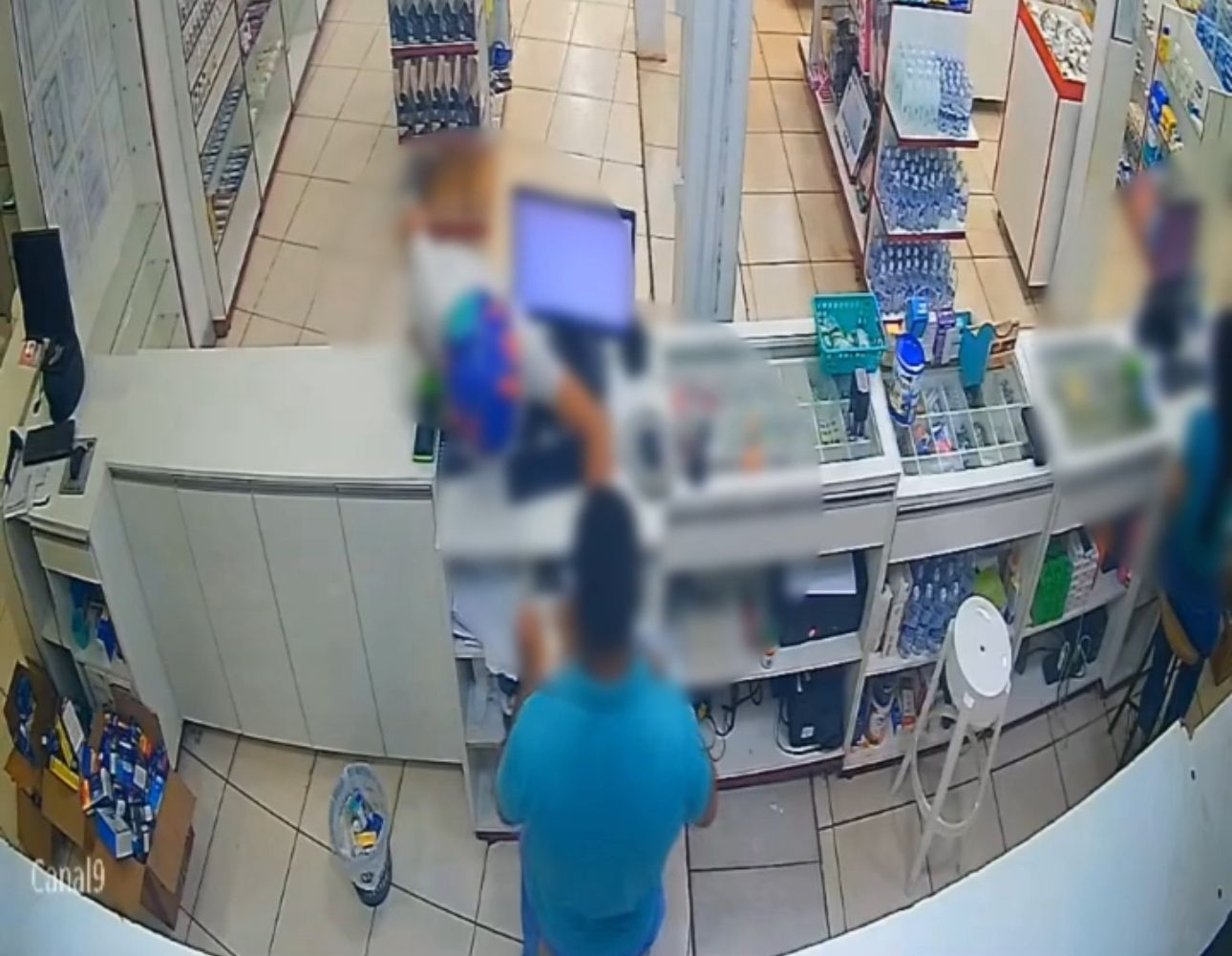 Na noite deste sábado, 25 de outubro, uma farmácia localizada na Rua 2, em Rialma, foi alvo de um assalto. Câmeras de segurança registraram o momento em que um homem, usando capacete, entra no estabelecimento e aborda o caixa com uma arma em punho.