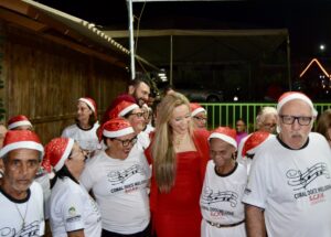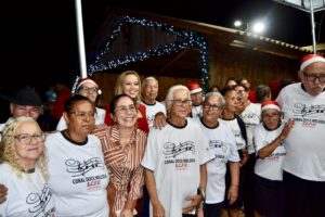 A primeira-dama Dra. Aline Gomes também participou da celebração e reforçou o convite para a programação que segue ao longo do mês, com a Cantata de Natal entre os dias 16 e 20 e, no dia 22, a tradicional entrega de brinquedos para as crianças do município.