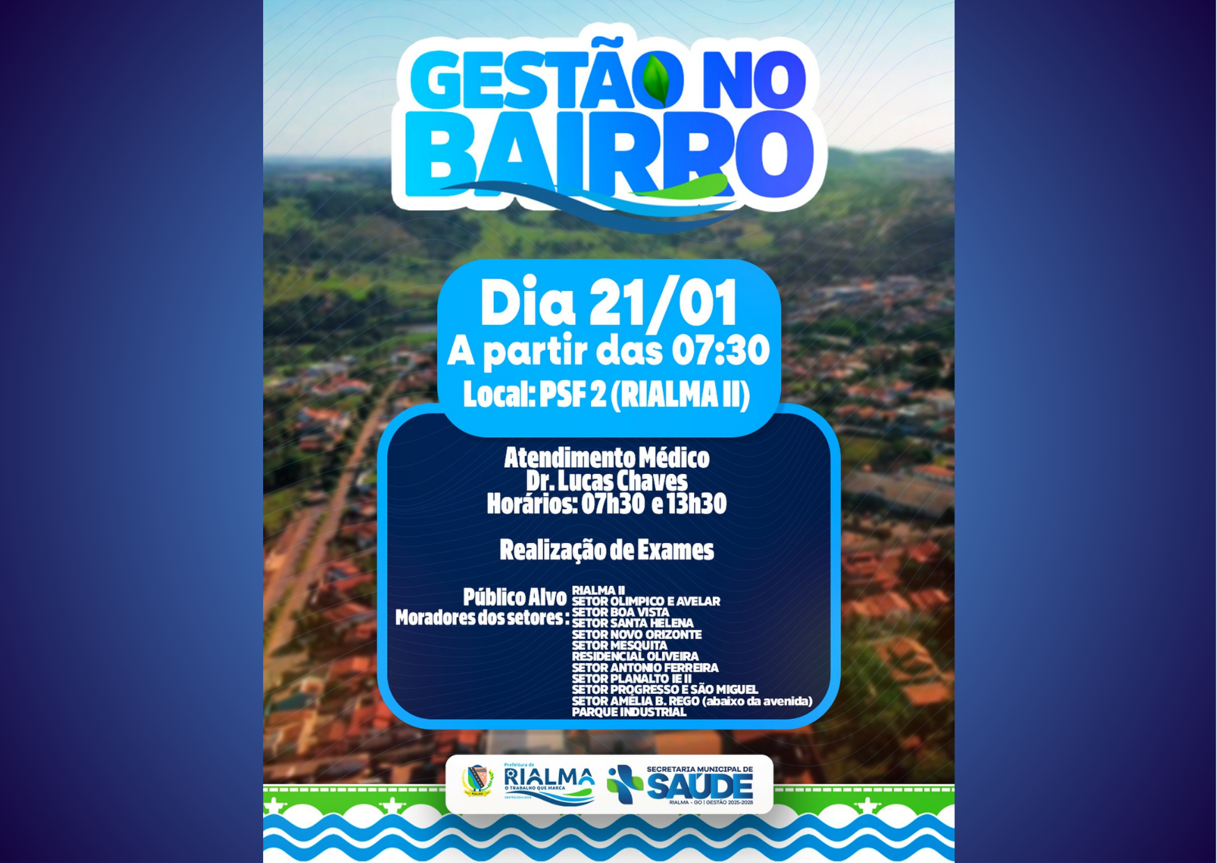 A Prefeitura de Rialma, por meio da Secretaria Municipal de Saúde, realiza nesta quarta-feira, 21 de janeiro, mais uma edição do programa Gestão no Bairro, levando atendimento médico e realização de exames diretamente à população.