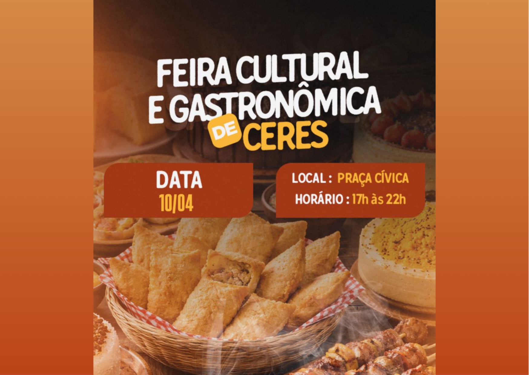 A Prefeitura de Ceres promove nesta sexta-feira, dia 10 de abril, a Feira Cultural e Gastronômica de Ceres, com programação voltada ao lazer, cultura e valorização da gastronomia local.