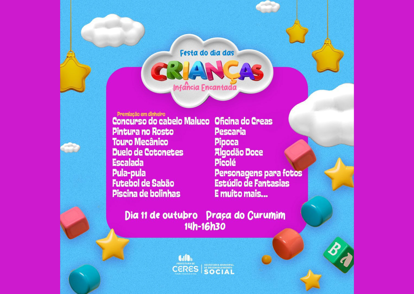 Festa do Dia das Crianças promete diversão e encanto na Praça do Curumim, em Ceres, neste sábado (11)
